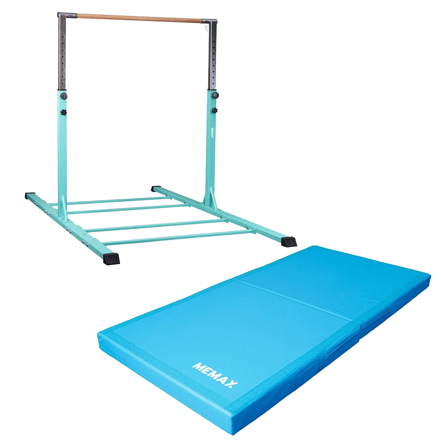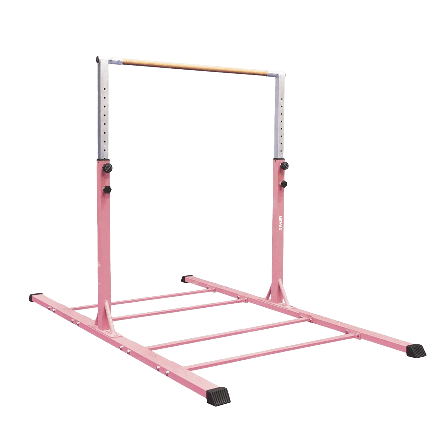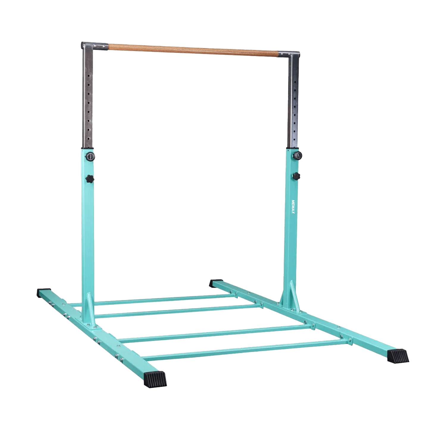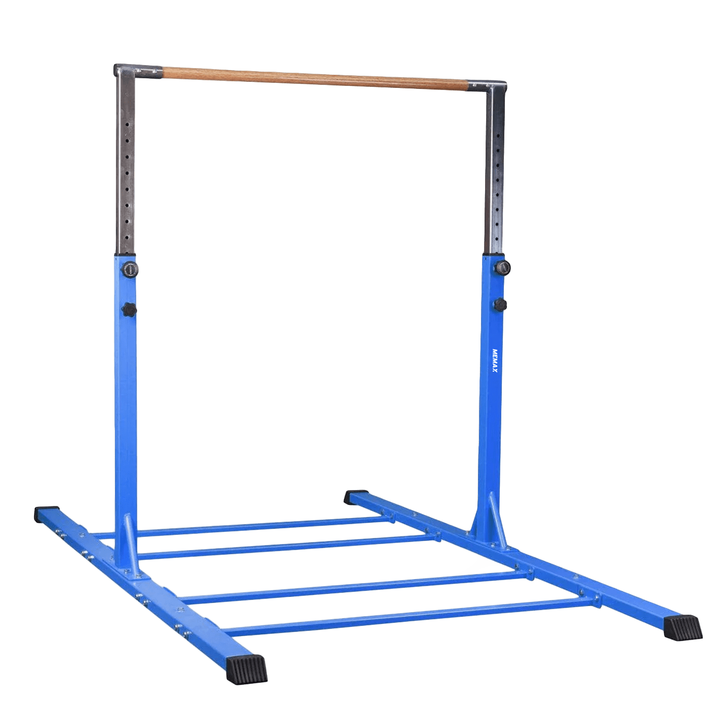 The MEMAX Advanced Gymnastics Bar features an industry-leading 2.5m long base for unbeatable stability, competition-style 35mm fibreglass rail, 45kg weight, 150kg static/50kg dynamic capacity, and 13 precise height positions from 120-180cm — making it the ultimate choice for advancing gymnasts who demand professional performance at home.